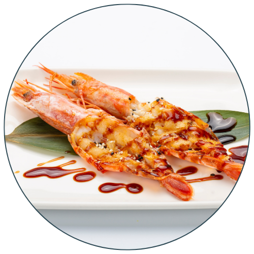 Brochetas de langostinos a la plancha con salsa teriyaki y sesamo